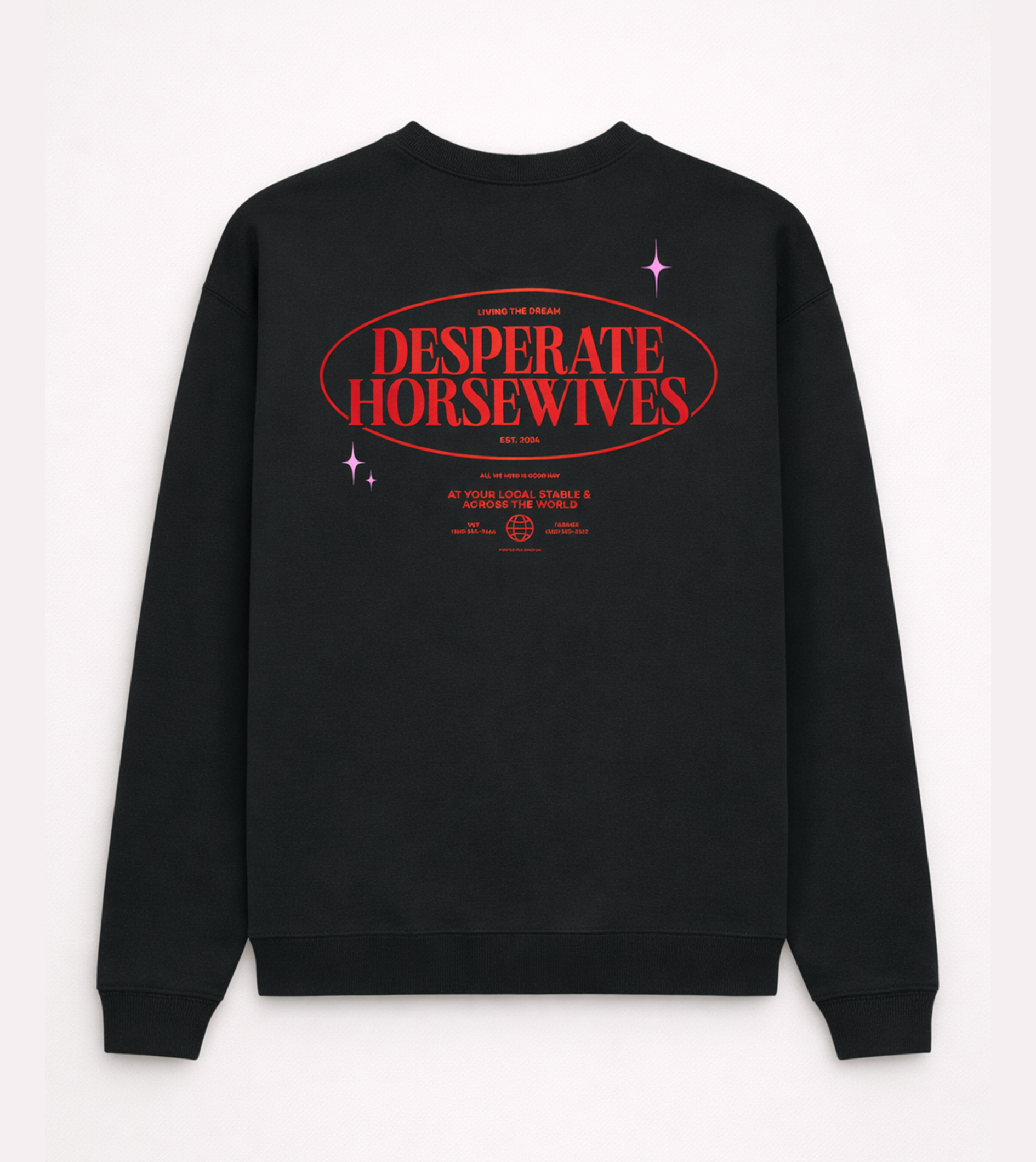 Unser „Desperate Horsewives“ Sweater ist das perfekte Accessoire für alle Tapferen da draußen, die ihre Leidenschaft für Pferde trotz der täglichen Herausforderungen niemals aufgeben.